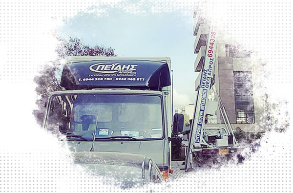 Διαθέτουμε φορτηγά δημοσίας χρήσεως μικρού και μεσαίου τύπου (και με υδραυλικές πόρτες) και ανάλογα με τις εκάστοτε εργασίες. Επίσης χρησιμοποιούμε ειδικό ανυψωτικό μηχάνημα για μεταφορές ή μετακομίσεις ιδιωτών ή εταιριών, με ύψος έως 30 μέτρα.